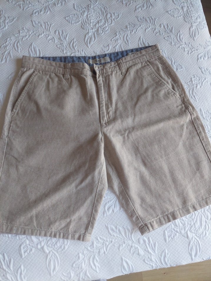 Erkek Bej Keten Rahat Kesim Şort