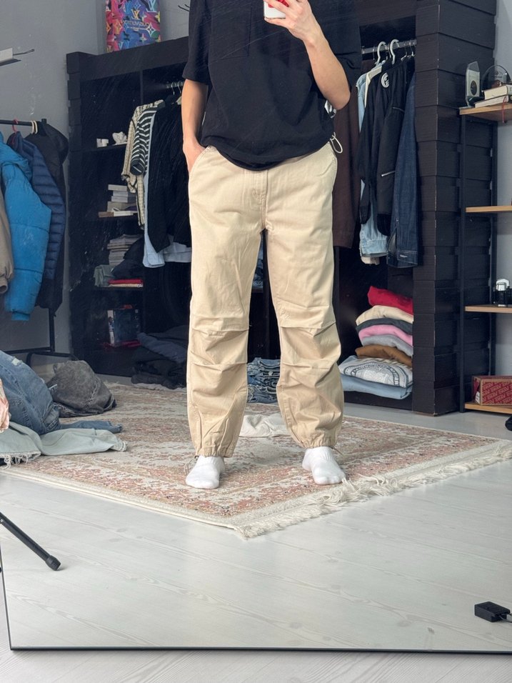 Bej renkte, pamuk kumaştan yapılmış, rahat kesim ve normal boy uzunluğunda erkek pantolonu. Desensiz tasarımıyla gündelik kullanıma uygun, şık ve rahat bir stil sunar.