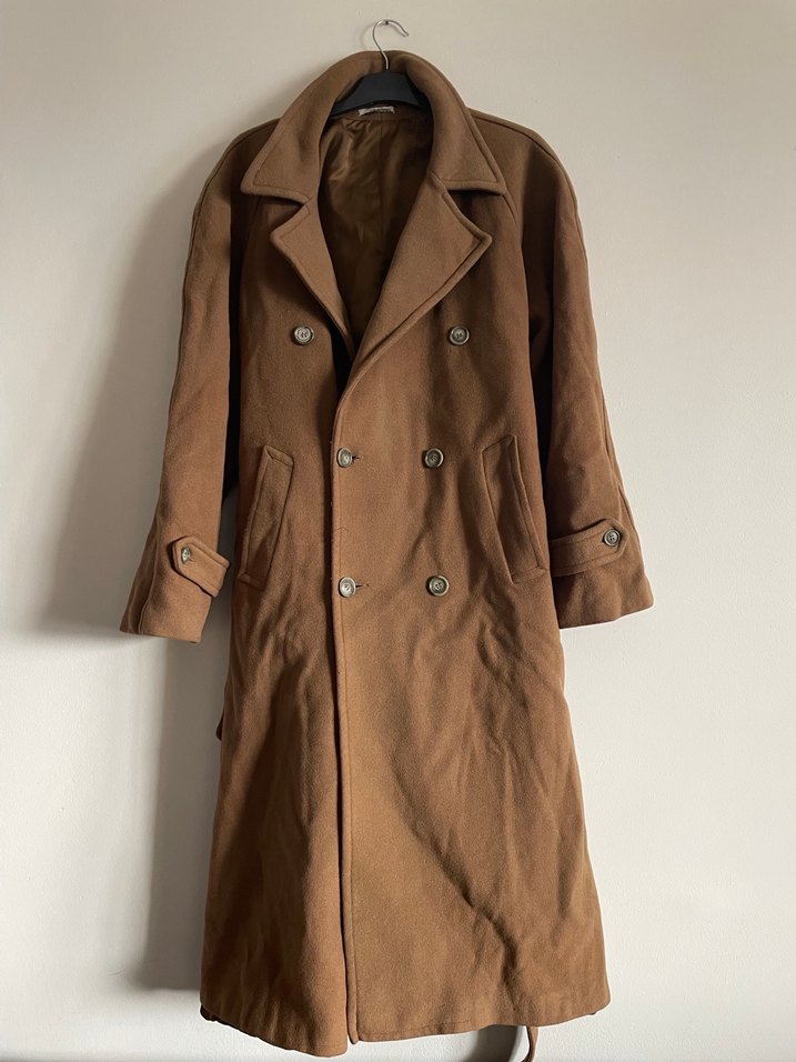 Erkek bej süet kaban, düğmeli ön ve kesik yaka detayıyla klasik tarzda uzun ve regular fit kesime sahiptir.