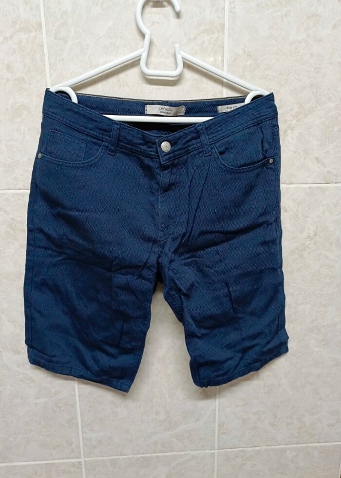 Erkek bermuda, çok iyi durumda, kot rengi kendinden desenli. Eşime dar geldiği için satıyorum çok da giymedi zaten