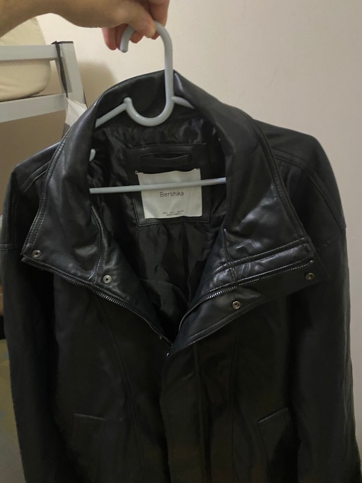 Siyah deri, fitted kesim biker ceket, notched lapel yaka ve tokalı detaylara sahip. Uzun kollu, midi boy ve günlük kullanıma uygun. Ürün kullanılmadı hediye geldi