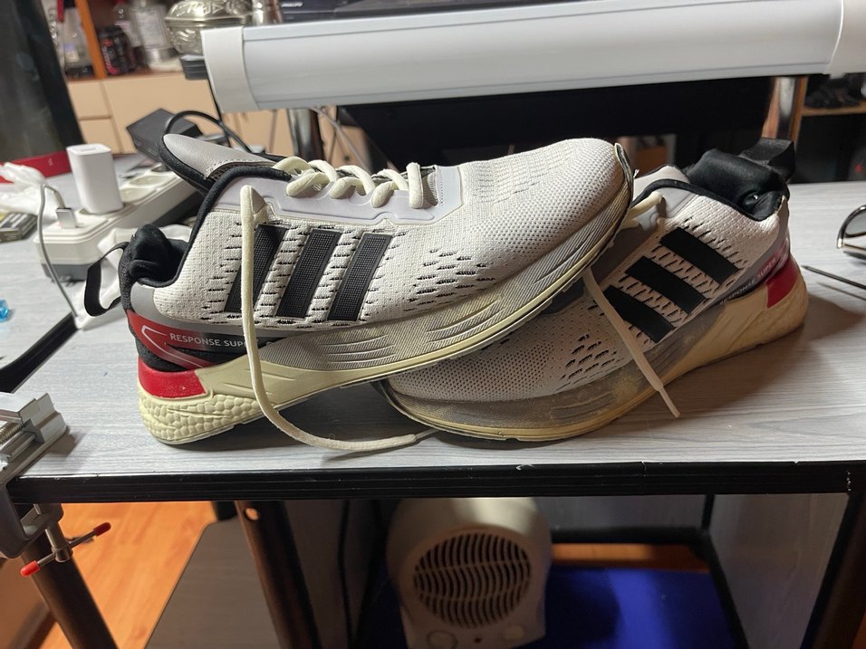 Gri detaylı beyaz Adidas erkek koşu ayakkabısı, bağcıklı ve kauçuk tabanlı, sokak stili için uygun. ♂️