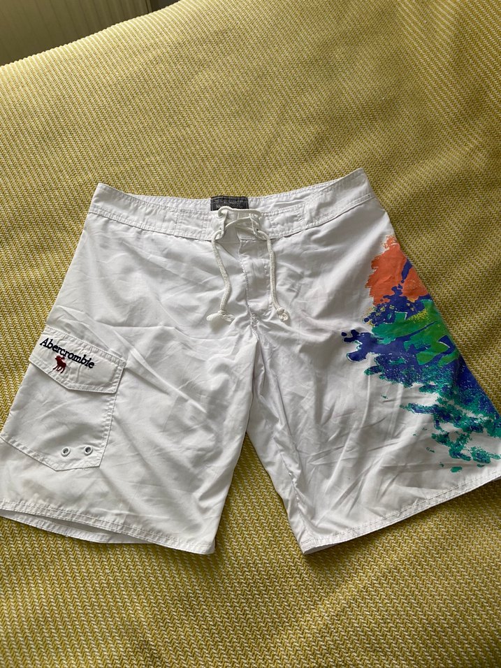 Bağcıklı ve düğmeli cepli, hafif batik desenli, bol kesim erkek mayo şortu. Plaj ve rahat kullanıma uygundur.