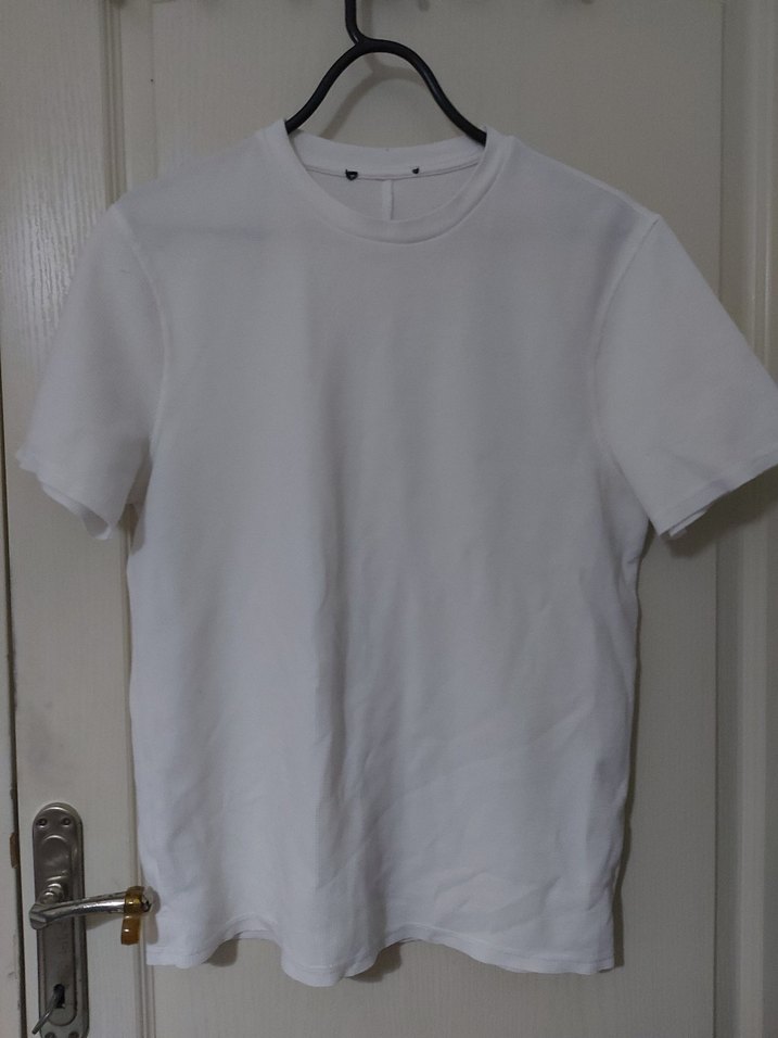 Gevşek kesim, normal boyda, minimalist tarzda erkek beyaz basic tişört. Desensiz sade tasarıma sahiptir.