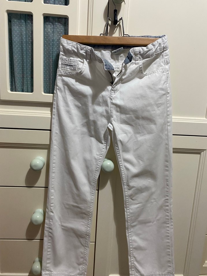 Erkek çocuklar için beyaz, bol kesim ve düğmeli pamuk pantolon, rahat ve gündelik tarz için uygundur. Sadece 2 resmi bayramda okulda giyildi Nokta şeklinde leke mevcut fakat çıkmadı için pek uğraşmadım