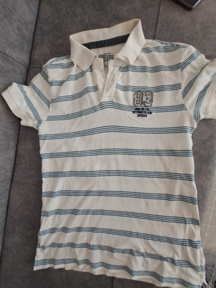 Pamuklu, kısa kollu, yaka düğmeli ve gri çizgili erkek polo yaka tişört. Sokak modasına uygun, vücuda oturan kesimde.