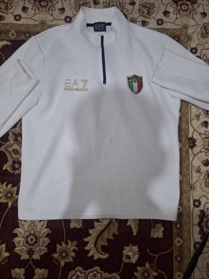 Uzun kollu, bisiklet yaka ve fermuarlı beyaz EA7 erkek sweatshirt. İnce baskılı ve rahat, sıcak dokusu ile günlük sokak stili için uygun.