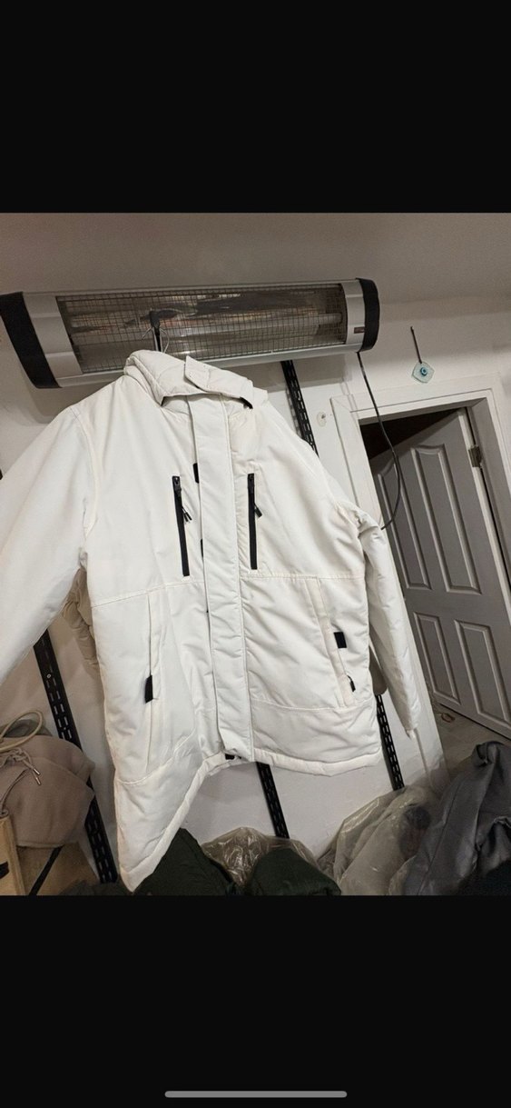Erkek kayak montu, yakalı, fitted kesim ve normal boydadır. Sentetik kumaştan üretilmiş, uzun kollu ve fermuarlı ceplidir. Beyaz ve gri renklerde, sokak stiline uygundur. ❄️