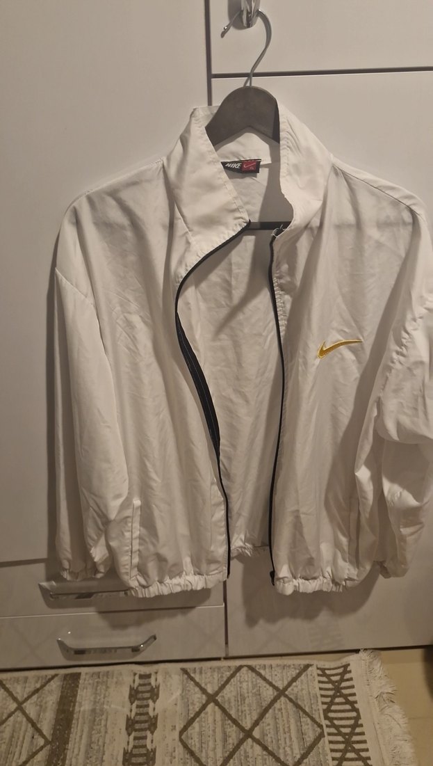 Erkek beyaz, parlak görünümlü yağmurluk; yüksek yakalı, fermuarlı ve uzun kolludur. Keten kumaştan, rahat ve salaş kesimlidir. Günlük kullanıma uygundur.☔
