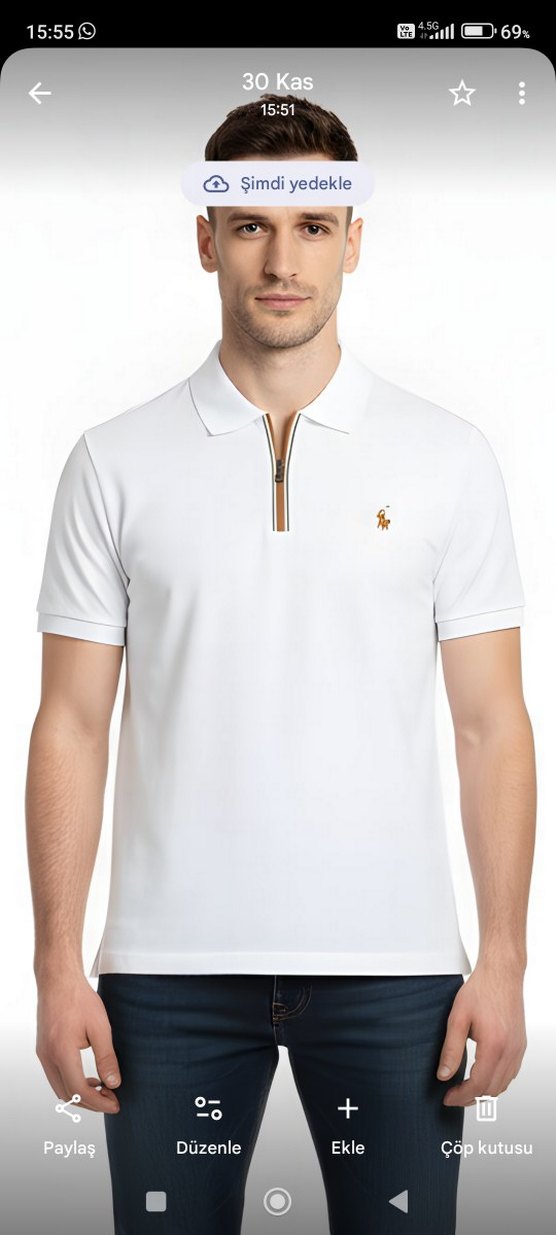 Erkek beyaz polo tişört, yakalı ve kısa kolludur. Fermuarlı ön detayı ve rahat kesimiyle günlük sokak stili için uygundur. XL,XXL.