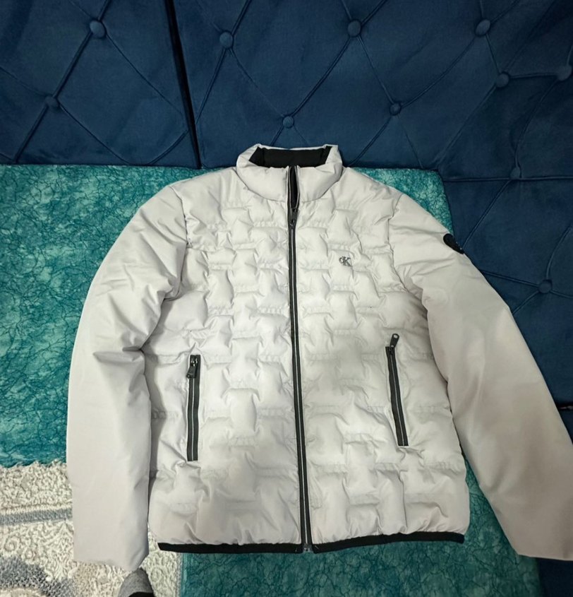 Erkek mont, uzun kollu ve bisiklet yaka tasarıma sahip. Fermuarlı ön ve cepleri var. Yumuşak, sıcak kumaştan yapılmış, günlük sokak stili için uygun beyaz ve gri tonlarında.