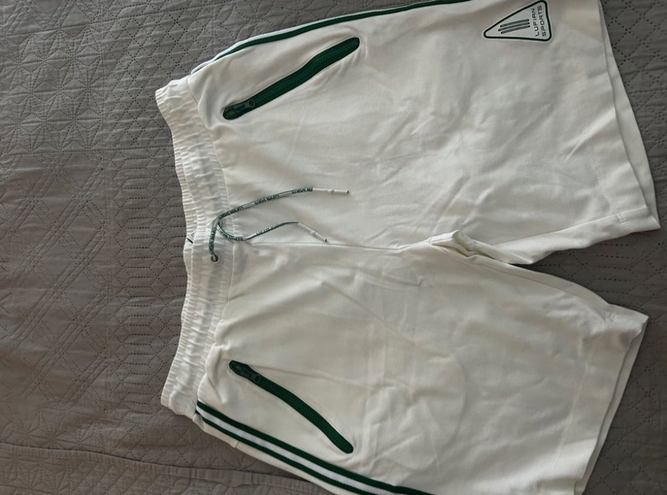 Fermuarlı cepleri ve midi boyu ile beyaz renkli, sentetik kumaştan yapılmış erkek için dar kesim sweatpant. Günlük ve sokak giyimine uygundur.
