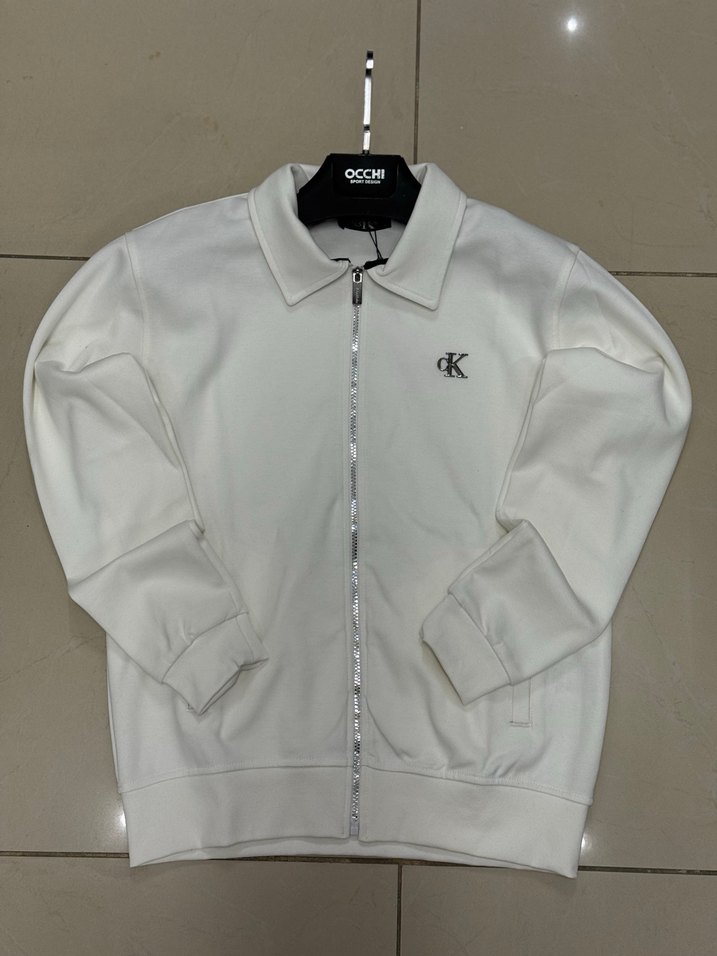 Erkekler için beyaz, uzun kollu, fermuarlı ve bisiklet yaka sweatshirt. Yumuşak fleece kumaştan, regular fit ve sade tasarıma sahip. Gri logo detayı bulunur.