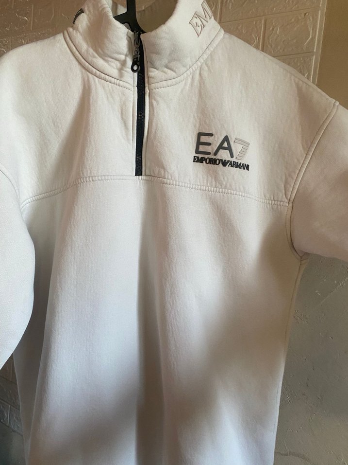 Erkek Beyaz Fermuarlı Sweatshirt