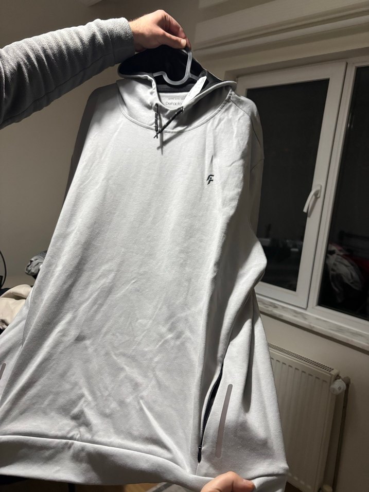Erkekler için fermuarlı, yuvarlak yakalı ve uzun kollu beyaz sweatshirt. Sentetik kumaştan, dar kesimli ve günlük kullanıma uygun.