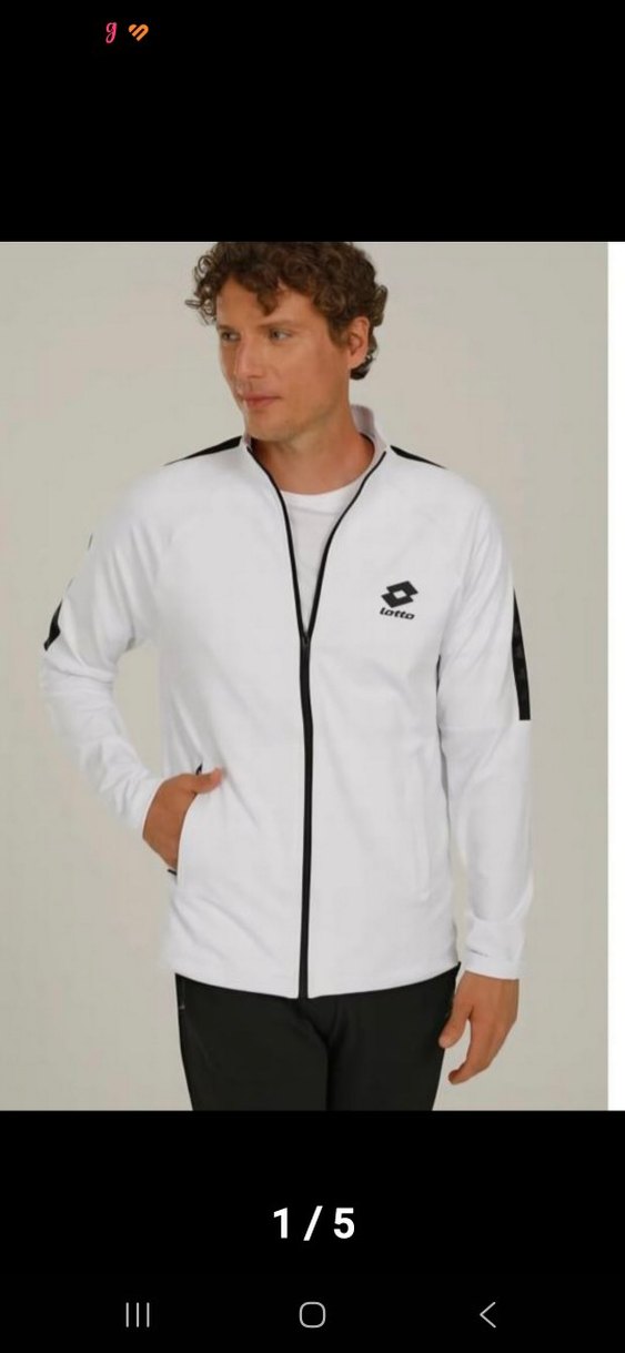 Erkek Beyaz Fermuarlı Sweatshirt LOTTO eşofman üstü