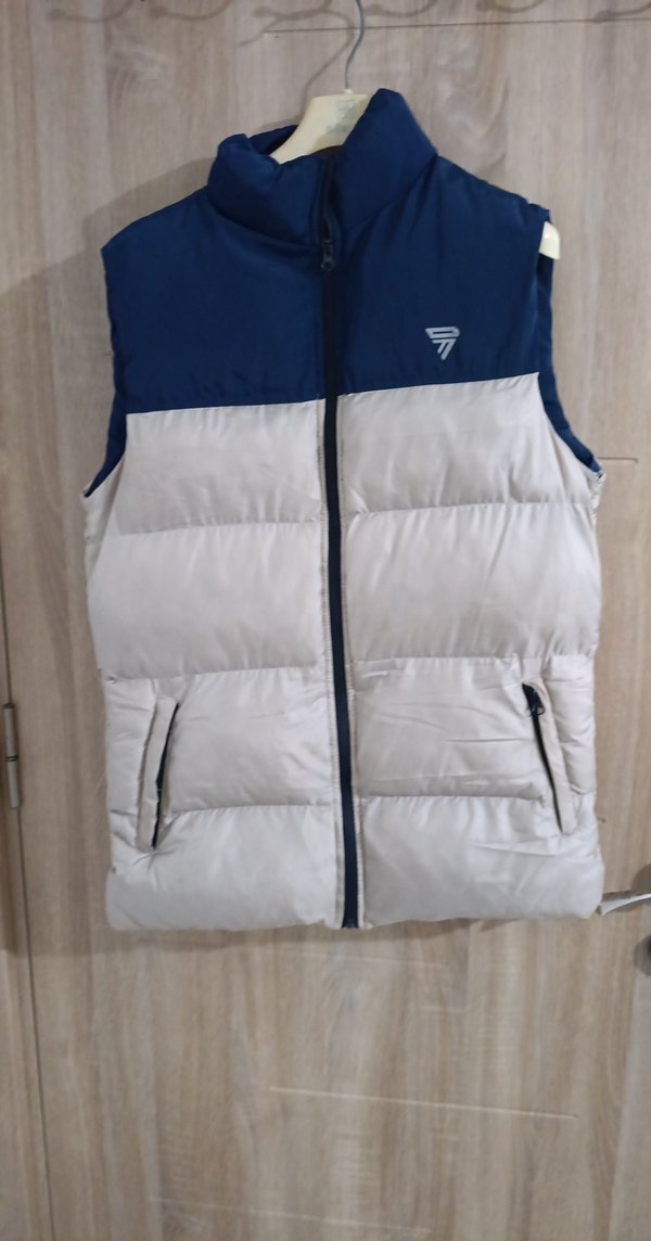 Erkekler için beyaz ve gri renk kombinasyonlu, fermuarlı ve yüksek yakalı, normal kesim yelek. Günlük kullanıma uygun rahat bir model. 13 14 15 yaş için uyumlu sadece bir sezon giyildi