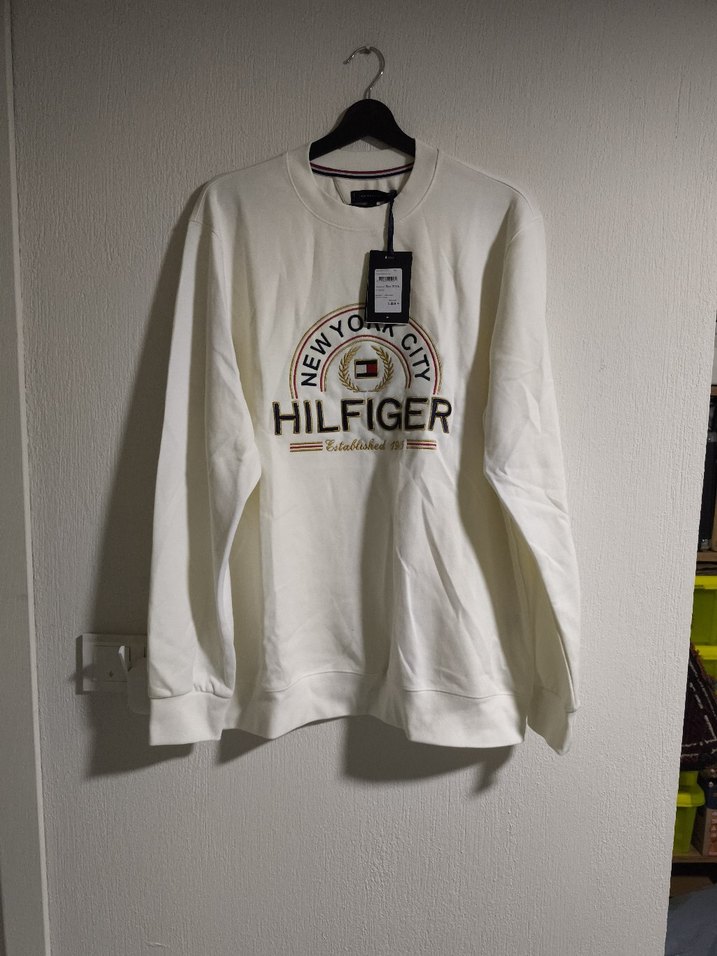 Erkek Beyaz HILFIGER Baskılı Sweatshirt
