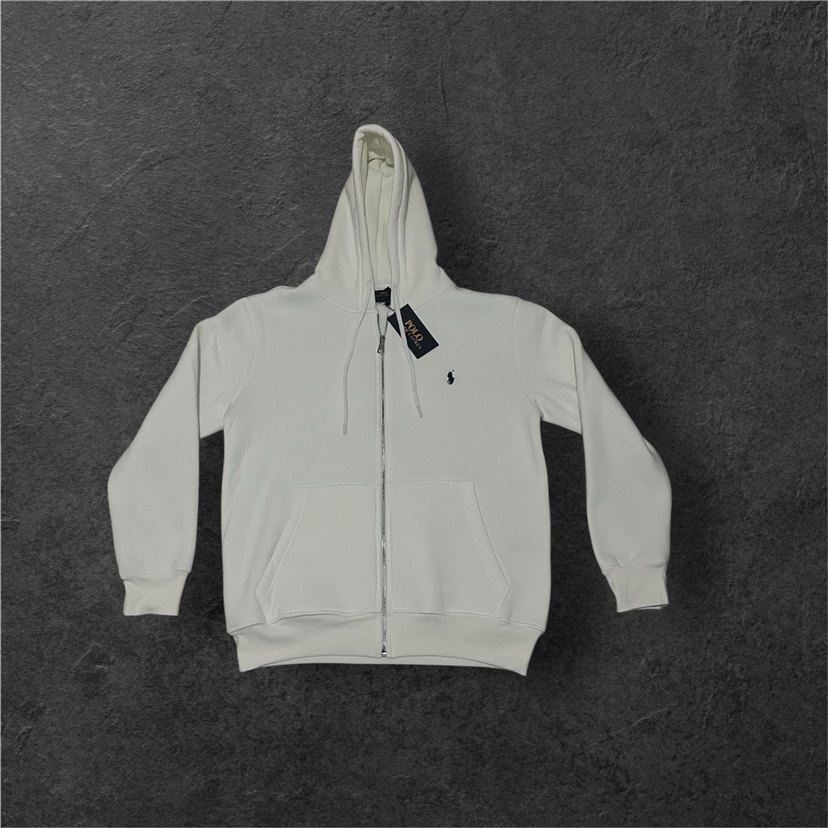 Erkek Beyaz Kapüşonlu Fermuarlı Ralph lauren hırka