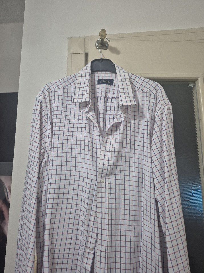 Pamuk kumaştan, düğmeli ve yakalı, regular fit erkek beyaz kareli uzun kollu gömlek. Ofis ve günlük kullanıma uygun şık ve rahat tasarım. Centone marka defosuz temiz