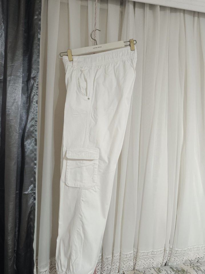 erkek Beyaz Kemerli Pamuklu Salaş Kumaş Pantolon