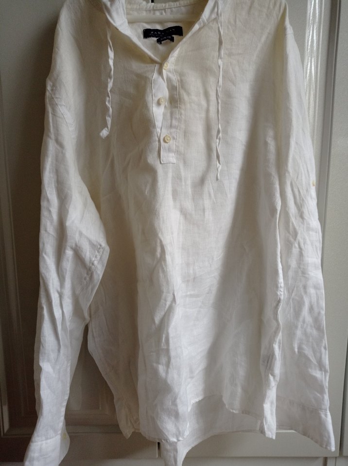 Erkekler için beyaz keten gömlek, düğmeli, uzun kollu ve bol kesimdedir. Bohem ve sade tarzıyla günlük kullanıma uygundur. dolapta beklemekten kaynaklı bazı yerlerinde hafif sararmalar var yıkayınca çıkar diye düşünüyorum alındı fakat kullanilmadı dolap bekleyenlerden