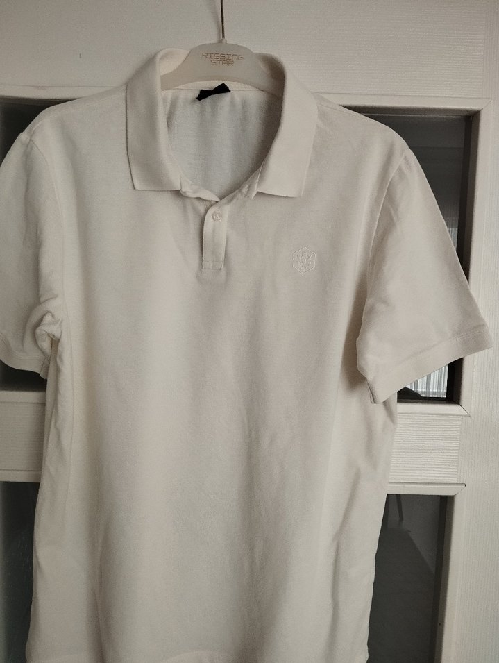 Erkekler için beyaz polo tişört, yakalı ve kısa kollu, nefes alabilen keten kumaştan yapılmıştır. Rahat ve salaş kesimiyle günlük kullanıma uygundur. ölçü, 51/64