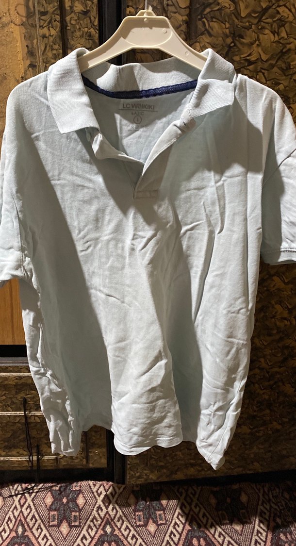 Erkekler için beyaz keten polo tişört, kısa kollu, yakalı ve düğmeli. Rahat kesimi ve sade tasarımıyla günlük kullanıma uygundur.