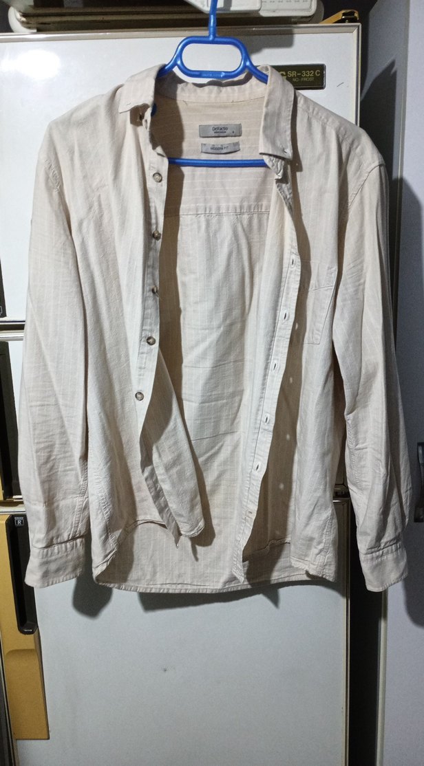 Beyaz keten, uzun kollu, erkek gömleği. Düğmeli, klasik yaka ve normal kesime sahip, minimalist ve sokak stilinde günlük kullanım için uygundur.