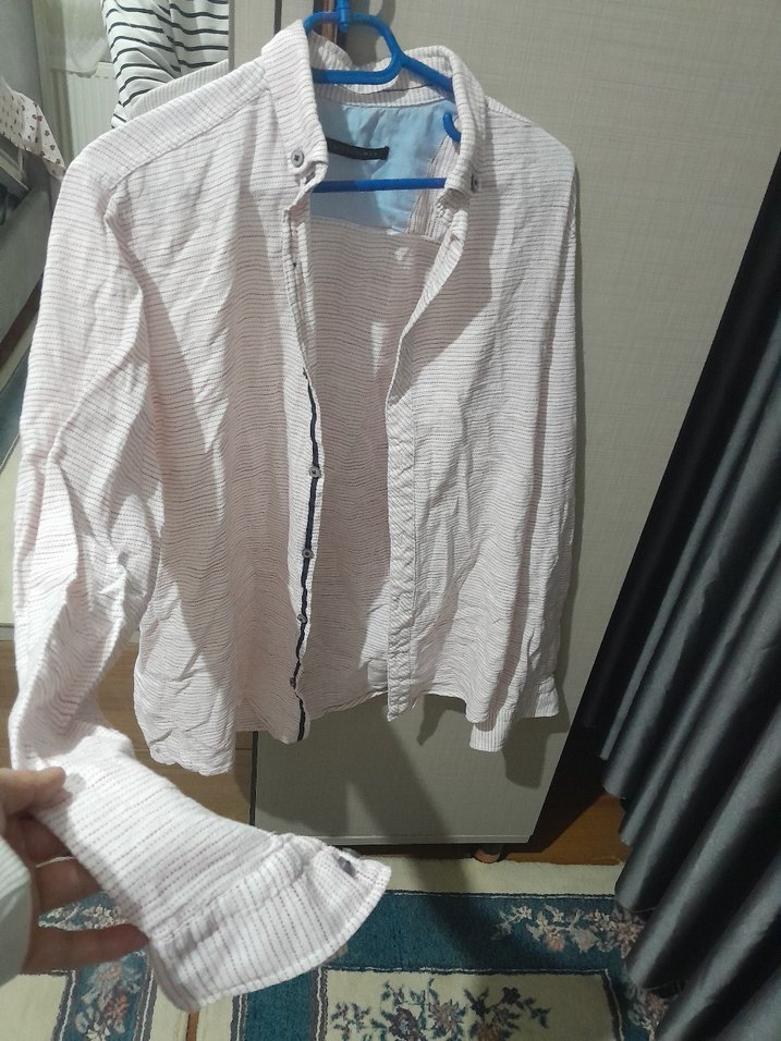 Erkekler için yakalı, düğmeli, hafif keten kumaştan, uzun kollu ve normal midi boyda rahat kesim gömlek. Günlük sokak stili için uygundur.