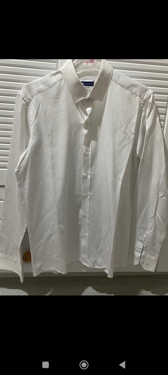 Erkekler için beyaz keten gömlek, yakalı ve düğmeli. Uzun kollu, regular fit ve normal boyda. İş ortamı ve günlük stil için uygundur.