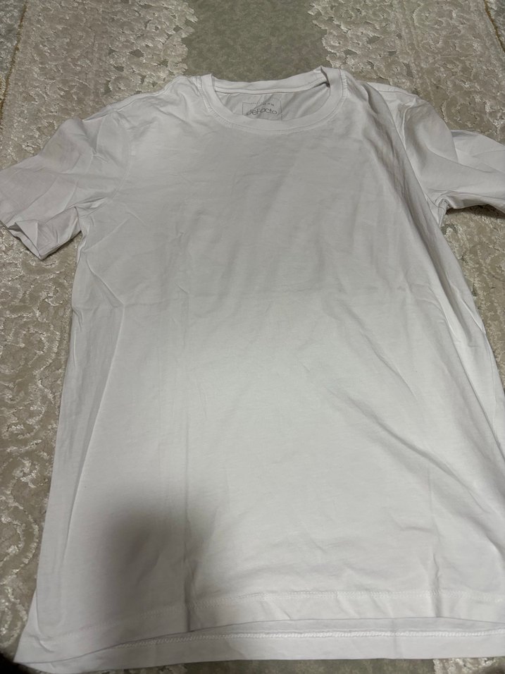 Erkekler için beyaz, kısa kollu, yuvarlak yakalı ve bol kesim pamuklu tişört. Günlük kullanıma uygun sade ve rahat stil. Hiç giyilmemiştir