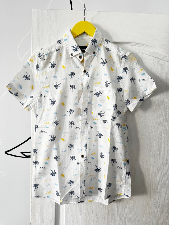 Pamuk kumaştan üretilmiş, kısa kollu, yakalı ve düğmeli erkek beyaz gömlek. Deseniyle rahat ve günlük kullanıma uygun.