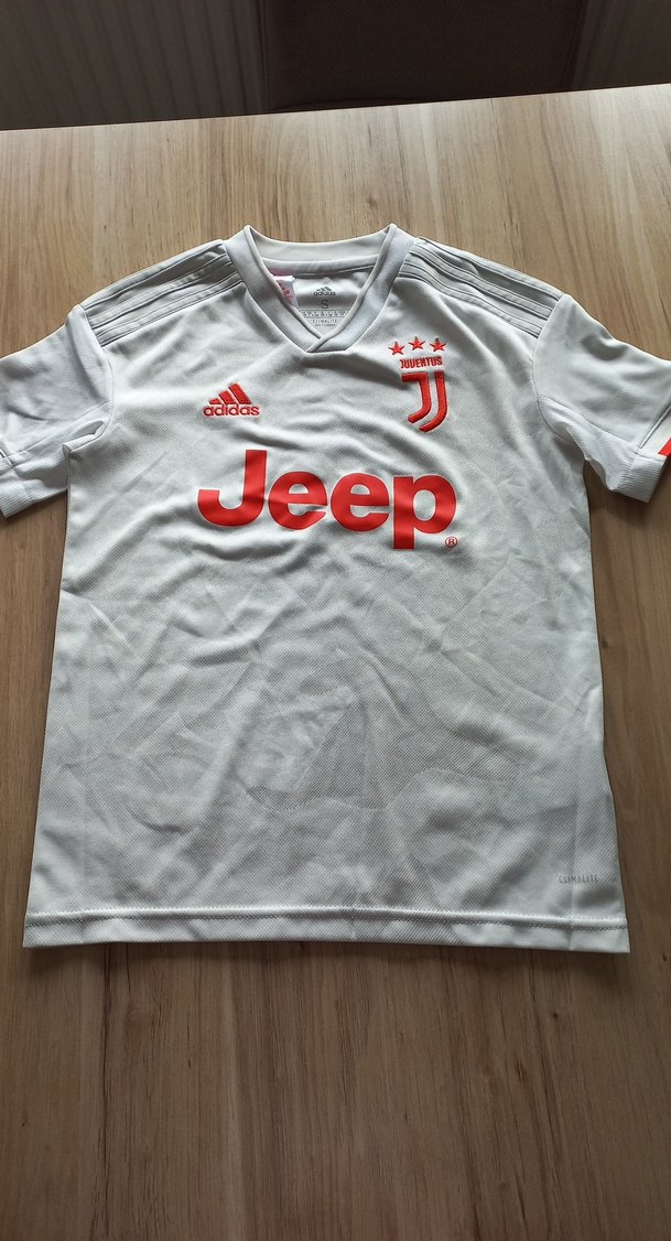 Beyaz sentetik kumaştan, kısa kollu ve v yaka, Juventus logosu ve Jeep baskılı velcro detaylı erkek forması. ⚽ en 38 cm boy 54 cm