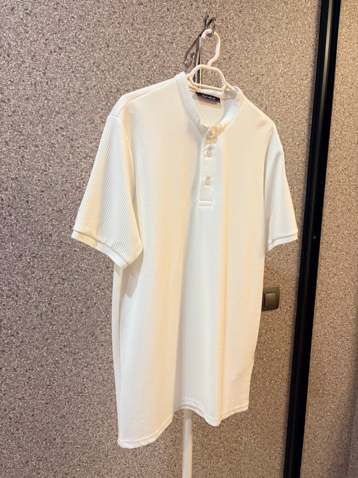 Erkekler için beyaz kısa kollu polo tişört, düğmeli yakası ve rahat kesimiyle günlük stiline uygun.