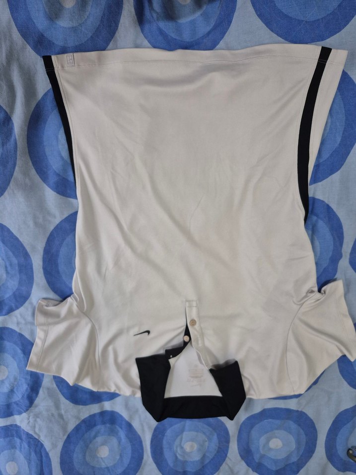 Erkek beyaz polo tişört, kısa kollu ve yakalıdır. Sentetik kumaştan yapılmış, sportif ve şık bir görünüm sunar. ⚽