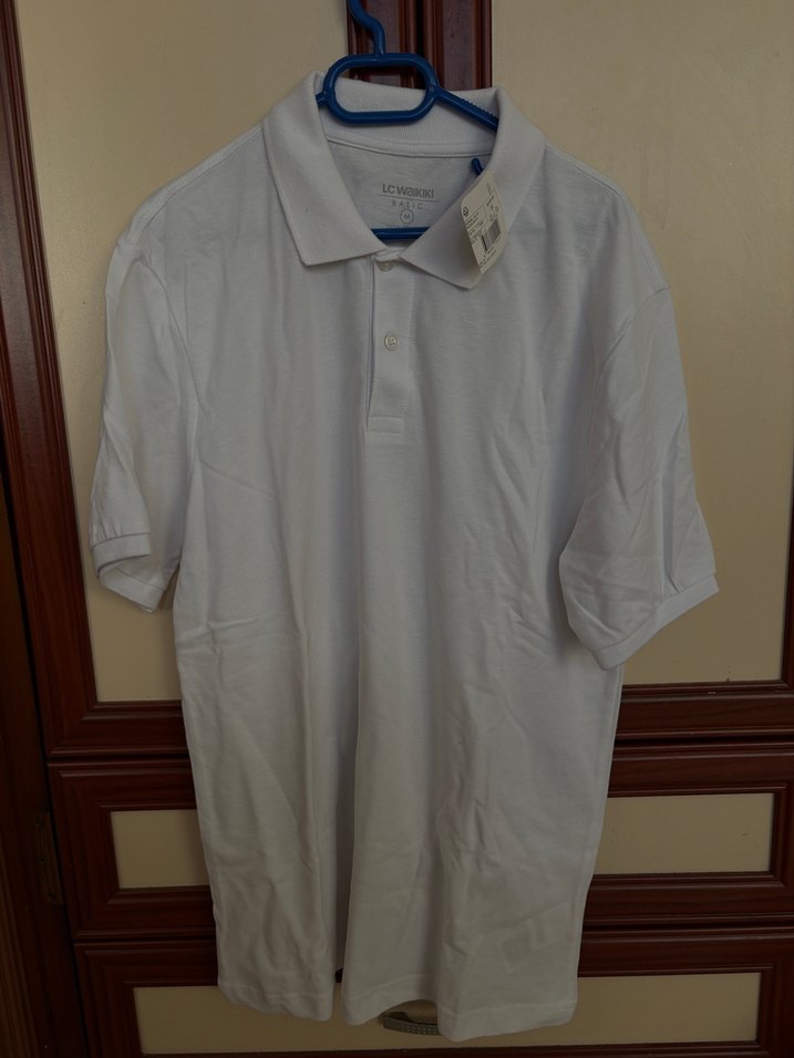 Erkekler için beyaz renkli, kısa kollu, yakalı pamuklu polo tişört. Rahat kesimi ve desensiz tasarımıyla günlük kullanıma uygundur.