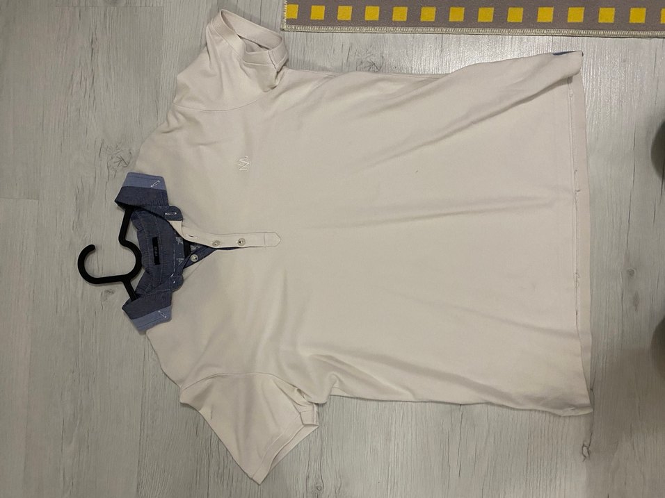 Beyaz renkli, kısa kollu, düğmeli yakalı erkek polo tişört. Regular kesim ve normal boyda, sentetik kumaştan üretilmiş, günlük sokak tarzına uygun.
