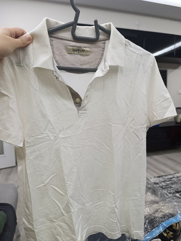 Erkekler için pamuklu, düğmeli ve polo yaka kısa kollu tişört. Bol kesim ve sade beyaz renktedir, günlük sokak stiline uygundur. marka temsili hurçtan çıktı kırışık sadece