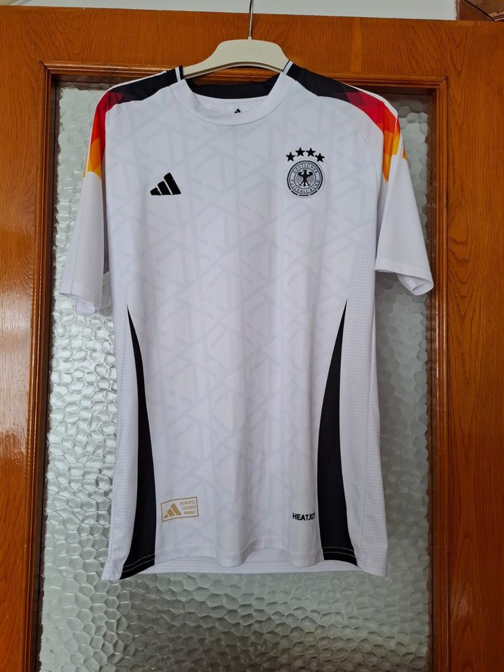 Beyaz renkli, kısa kollu, bisiklet yaka ve baskılı desenli erkek spor forması. Sentetik kumaştan, fitted kesim ve velcro detaylıdır. Spor ve sokak stiline uygundur. ⚽