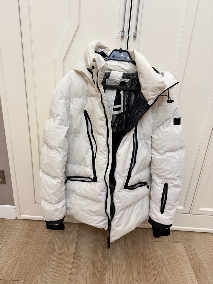 Beyaz renkli, fermuarlı cep detaylı, sentetik kumaştan yapılmış, normal uzunlukta ve strappy kollu erkek kışlık ceket. Moda tutkunları için uygun bir sokak stili ürünü. ❄️