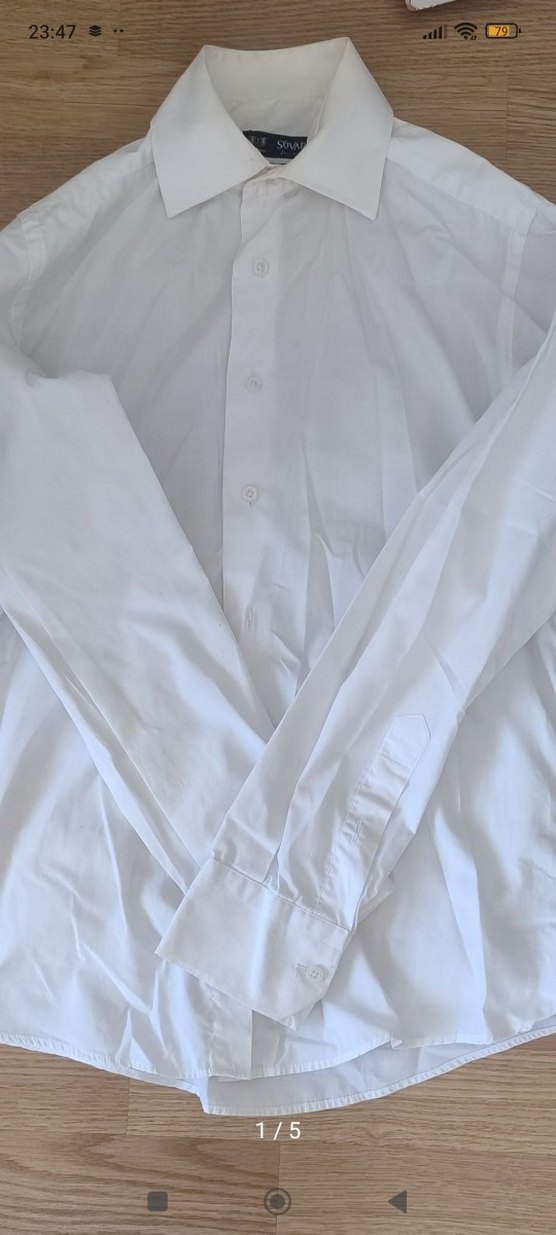 Erkek kaliteli kumaştan yapılmış, düğmeli, yakalı ve uzun kollu klasik beyaz gömlek. Rahat kesimi ve sade tasarımıyla ofis için uygundur.