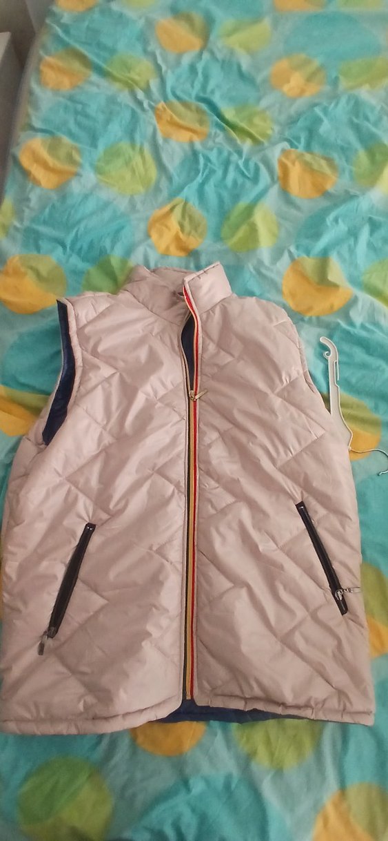 Erkek kolsuz yelek, fermuarlı ve yakalıdır. Yumuşak, sıcak tutan polar kumaştan üretilmiş, dar kesim ve beyaz renklidir. Günlük kullanıma uygundur.