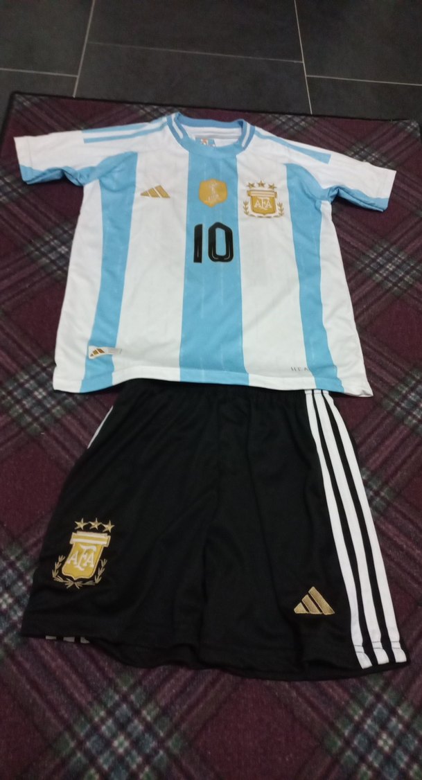 Erkekler için beyaz ve mavi kısa kollu, baskılı, dar kesim forma ve siyah şort takımıdır. Sentetik kumaştan üretilmiş, velcro detaylıdır. Spor ve günlük kullanıma uygundur. ⚽