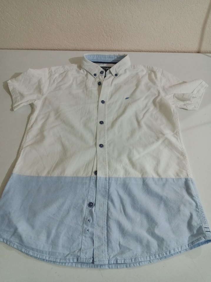 Erkekler için kısa kollu, yakalı ve düğmeli ön kısmı olan pamuklu gömlek. Beyaz ve pastel mavi renklerde, regular fit ve deseniz tasarıma sahiptir.
