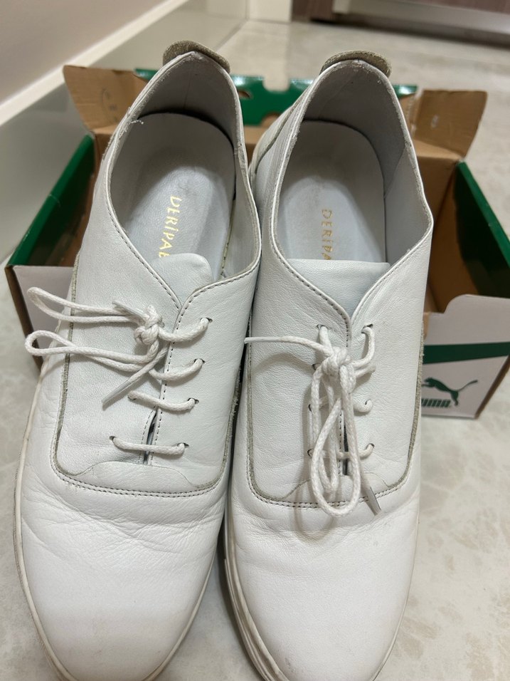 #deripabuç marka hakiki deri ayakkabıları için beyaz bağcıklar, minimalist ve street wear tarzında.42 numara
