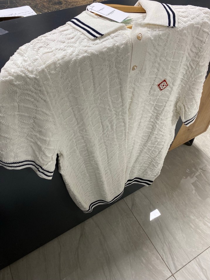 Bu erkek beyaz polo tişört, örgü dokusu ve kısa kollu, bol kesimi ile rahat bir görünüm sunar. Bisiklet yaka ve nakış detaylara sahiptir, evde rahat kullanım için uygundur.✨