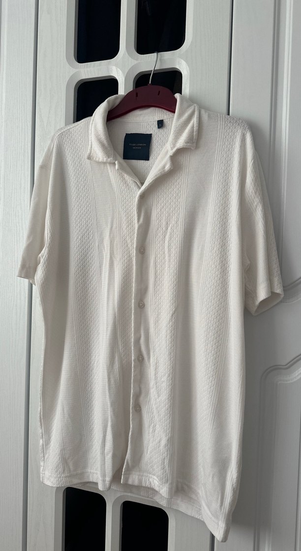 Keten kumaştan yapılmış, kısa kollu, yakalı ve düğmeli erkek gömleği. Salaş kesimi ve normal boyu ile günlük rahat sokak stiline uygun.