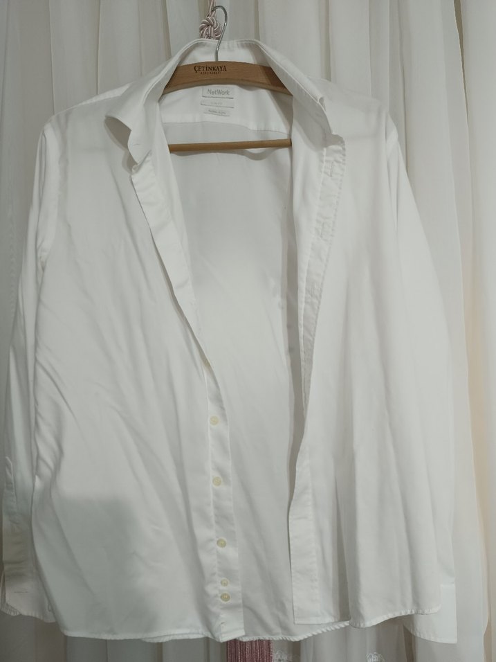 Erkekler için düğmeli, yakalı ve uzun kollu pamuklu gömlek. Normal kesim, desensiz ve pastel beyaz renktedir. Ofis kullanımı için uygundur.