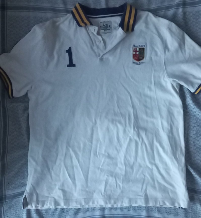 Pamuklu, beyaz renkli, düğmeli yakaya ve baskılı detaylara sahip, sportif günlük kullanıma uygun dar kesim polo tişört. ️♂️ yıkanması lazım, rengi tam beyaz değil